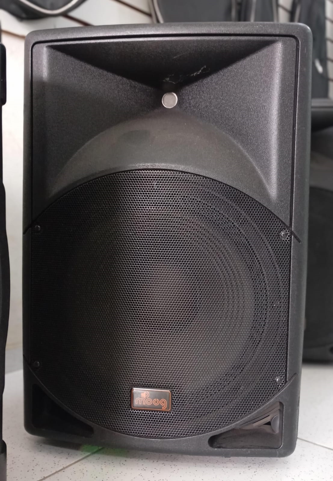 Caixa de som Moog LP-300 15 Passiva - 01 falante de 15" - 300 Watts RMS - 01 Drive de Titânio de 1,75" - Impedância Nominal: 8 Ohms - Frequência de resposta: 45Hz - 20kHz - Sensibilidade @ 1W / 1m: 99 dB - Configuração: 15" / 2 vias - High Driver: 1.75 Tita - Low Woofer: 15" - Corte de Frequência (Crossover): 2,5 kHz / 12 dB - Injetada em Plástico. - Conectores: SPEAKON