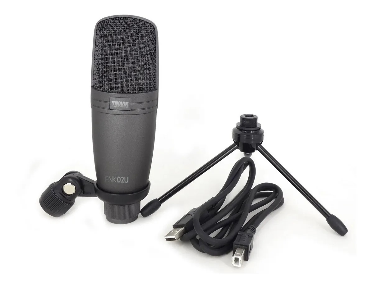 MICROFONE CONDENSADOR NOVIK USB FNK02U A FNK-02U é um microfone USB de condensador de estudo profissional, projetado para ser usado em diferentes situações que exigem uma resposta de frequência plana e baixa distorção e clareza. Este produto inclui um cabo USB e tripé. Especificações Técnicas Tipo Condensador Padrão polar Cardióide Resposta de Freqüência 30Hz - 18KHz Sensibilidade -34dB Impedância de saída 100O Impedância de carga - 1000 Ohms Piso de ruído 16dBA SLP Max 132dB Sinal / ruído 78dB